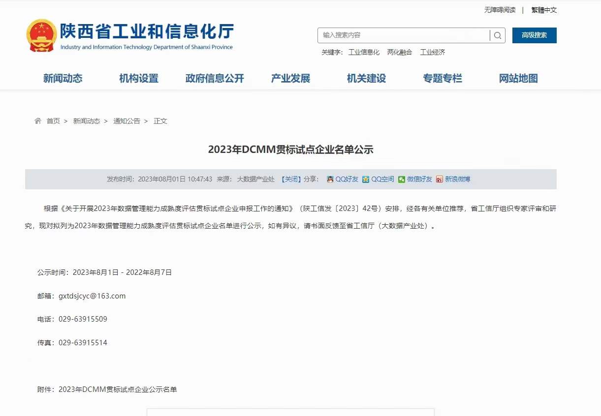 熱烈祝賀我公司入選2023年度陜西省DCMM貫標試點企業