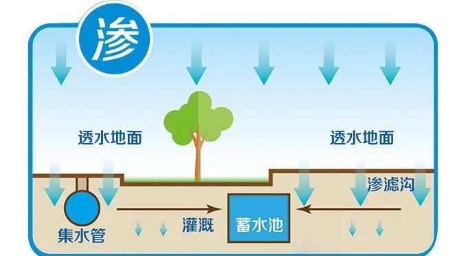 改變各種路面、地面鋪裝材料,改造屋頂綠化,調整綠地豎向,從源頭將雨水留下來然后“滲”下去。