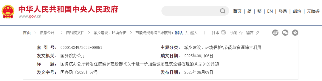 6月6日,住房城鄉建設部《關于進一步加強城市建筑垃圾治理的意見》已經國務院同意。